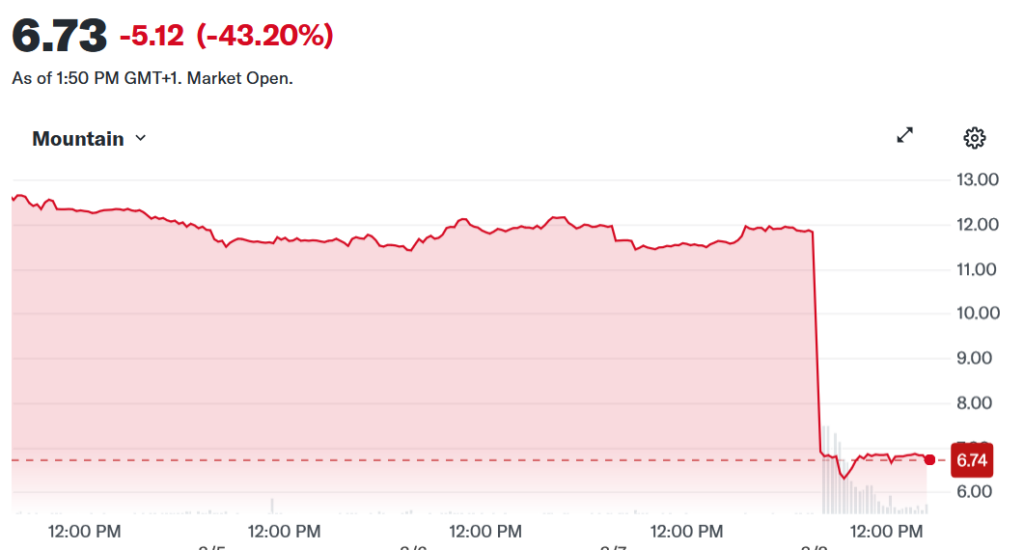The stock has continued falling from -16% pre-market to a nice red -31% currently.